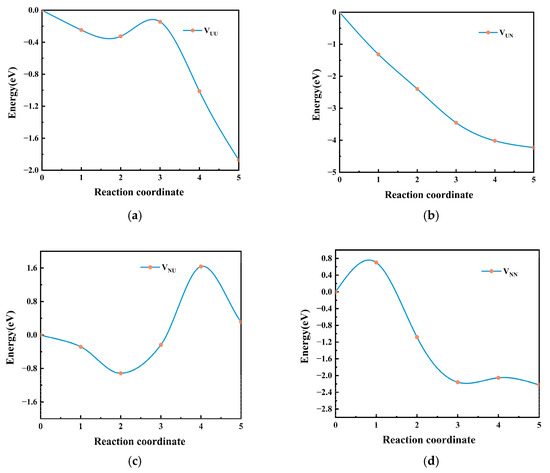 - Nie, J.L.; Ao, L.; Zu, X.T.; Huang, H.; Liu, K.Z. First-principles study of oxygen adsorption and diffusion on the UN(001) surface. Phys. Scr. 2015, 90, 125801. [Google Scholar] [CrossRef]