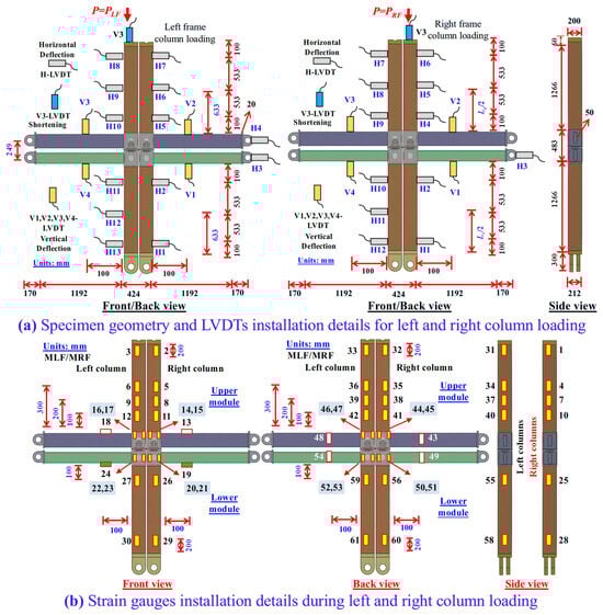 Details of (a) Geometry and LVDTs and (b) Strain Gauges of the Tested Specimen.
