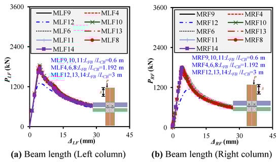 Impact of beam lengths on frame mechanical behavior under left-/right-column loadings.