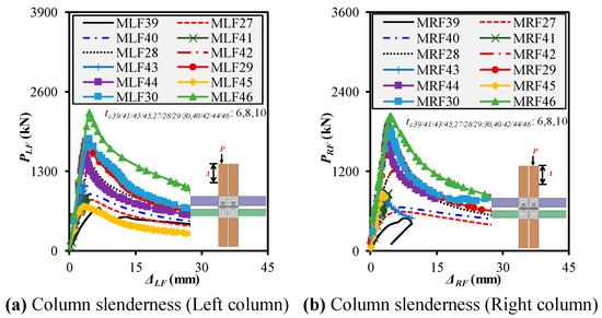 Impact of column slenderness on frame mechanical behavior under left-/right-column loadings.