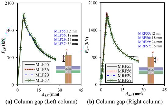 Impact of beam gap on frame mechanical behavior under left-/right-column loadings.