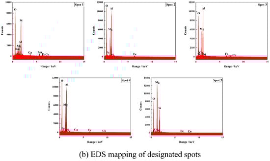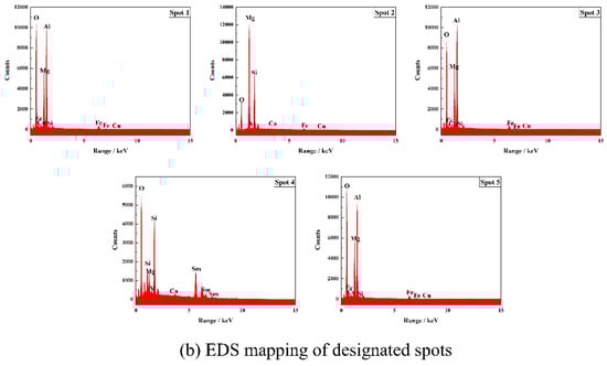 | 5 | 15.44 | 30.61 | 0.38 | 45.75 | 0.00 | 0.00 | 6.82 | 0.19 | 100 | Magnesium–iron–aluminum spinel |