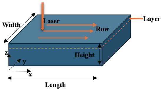 Then, the processing settings are modified to align with the values used in the earlier study by Cho et al. [44]. The laser power is set at 375 W, the layer thickness is 60 µm, the hatch spacing is 120 µm, and the scan speed is 1020 mm/s. The experimental setup includes five IDs that represent different layers and rows, as detailed in Table 2 and Figure 1.