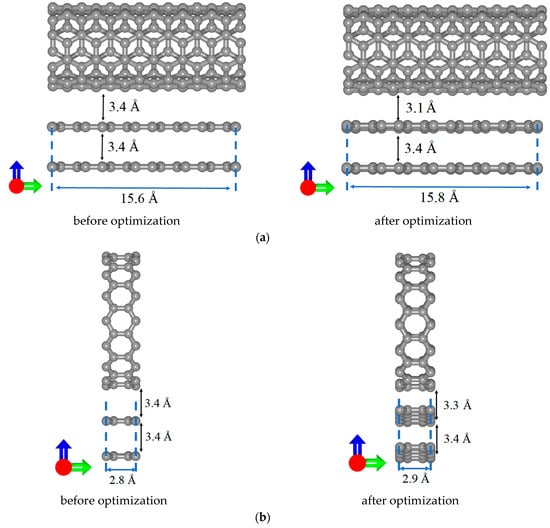 - Xu, T.; Jiang, J. On the Configuration of Graphene/Carbon Nanotube/Graphene Van der Waals Heterostructure. Phys. Chem. Chem. Phys. 2023, 25, 5066–5072. [Google Scholar] [CrossRef]