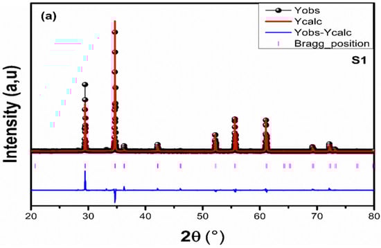 Experimental findings have illustrated that variations in crystallite size and morphology significantly impact the photocatalytic activity of ferrites, correlating directly with changes in calcination temperature [40,41]. In light of these considerations, this study aims to investigate the specific effects of calcination temperature on the structural, morphological, and optical properties of Cd0.6Mg0.2Cu0.2Fe2O4 spinel ferrites synthesized via the sol–gel method. Calcination temperatures of 950 °C (S1) and 1050 °C (S2) will be meticulously analyzed and contrasted to elucidate their effects on crystallinity, microstructure, and energy band gap. Subsequently, the photocatalytic activity of the synthesized ferrites will be assessed through the degradation of methylene blue as a representative pollutant. This research endeavors to provide comprehensive insights into the intricate relationships among synthesis conditions, material properties, and photocatalytic performance, thereby paving the way for future advancements in the utilization of spinel ferrites for environmental applications.