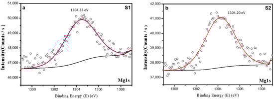 Mg1s XPS spectra of S1 (a) and S2 (b).