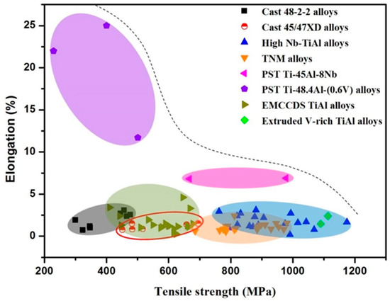 - Liu, S.; Ding, H.; Chen, R.; Guo, J.; Fu, H. Remarkable improvement in tensile strength of a polycrystalline γ-TiAl-based intermetallic alloy by deformation nanotwins. Mater. Sci. Eng. A 2021, 823, 141692. [Google Scholar] [CrossRef]
