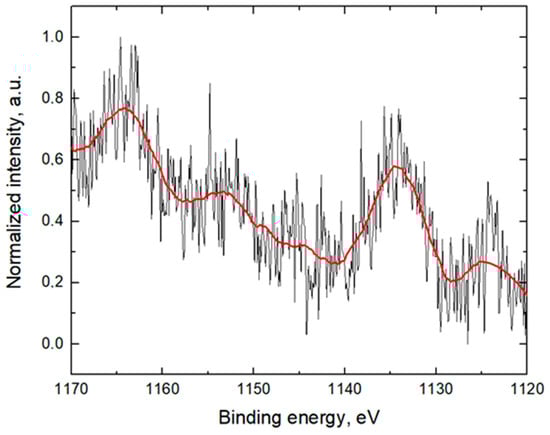 High-resolution Eu3d spectra were acquired for all samples (Figure 7), despite the low concentration of europium dopants, which renders quantitative analysis challenging. The relative positions of the maxima remain the same throughout all of the samples; however. the spectra are noisy. Therefore, it is impossible to say if there is any difference in the binding energies. Narrow scans reveal the presence of both Eu2+ and Eu3+ components across the sample series [21]. This observation suggests that, even under reducing synthesis conditions aimed at promoting the Eu2+ state, a small fraction of europium remains in the trivalent form, possibly due to incomplete reduction or surface oxidation effects.
