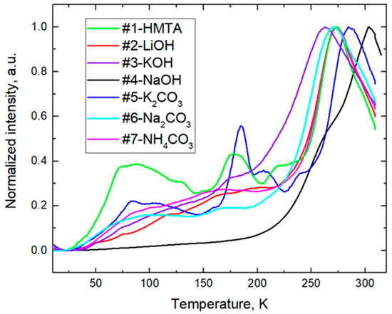 These most temperature-sensitive samples are from the first group from Table 2 and are characterized by lower trapping center depths and are suited for contactless sensing applications [31,36].