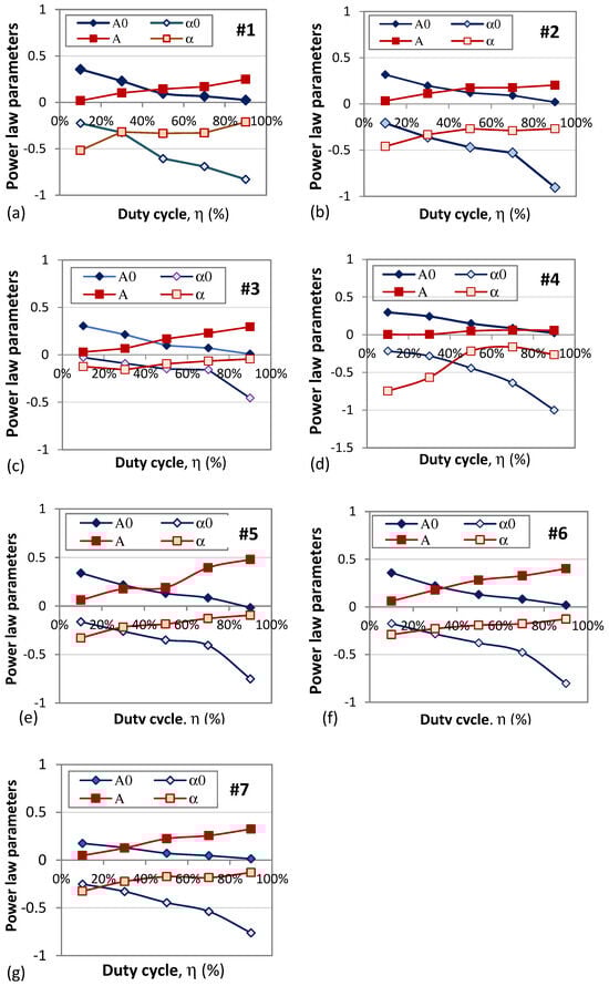 The physical meaning of the A0, α0 and A, α power law parameters are as follows [32,35].