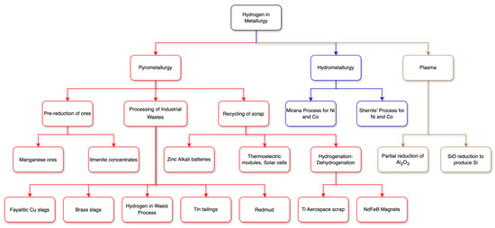 Application of hydrogen (as H2/H) in metallurgy [22,23], modified.