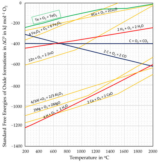 Richardson–Ellingham diagram with TeO2 and H2O formation.