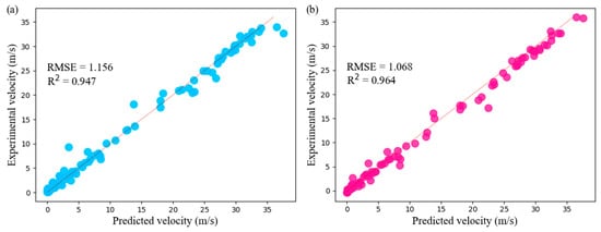 For the TL model, the R2 score and RMSE achieved values of 0.964 and 1.068, representing a notable enhancement over the eight ML models based on the experimental data. This confirms the excellent prediction ability of the TL model. Owing to the physical information derived from MD calculations, the TL model is better equipped to capture the overall data trends in the experimental data. Figure 9 shows the interpolation 10-fold cross-validation prediction results of the ETR model and TL model.
