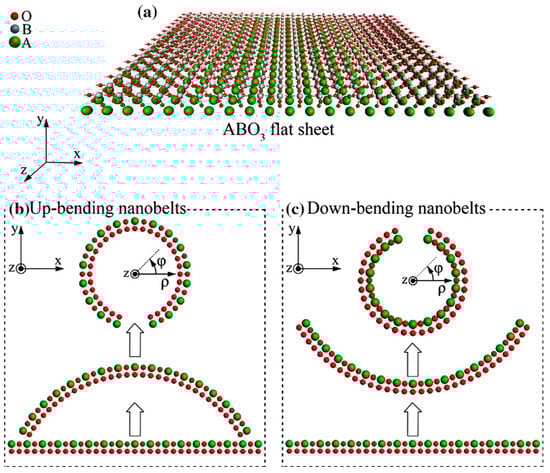 (a) Planar, (b) up and (c) down bent ABO3 nanobelts. Reprinted from [94], copyright (2014), with permission from Elsevier.