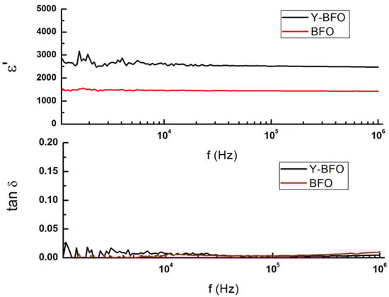 Dielectric constant and loss tangent values comparison of Y-BFO and BFO samples. Reprinted from [3], under CC-BY license.