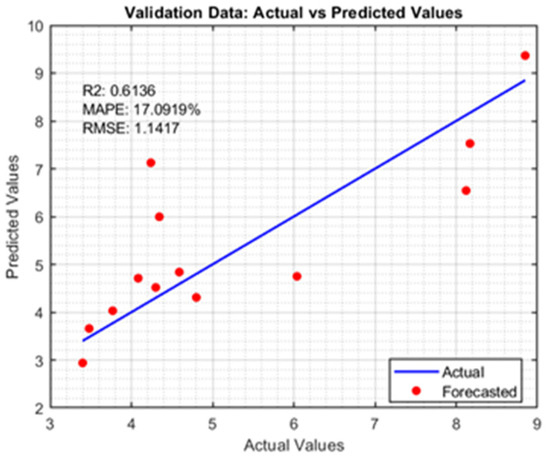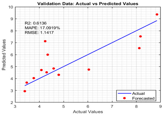 Mean absolute percentage error () indicates the accuracy of the model’s predictions by measuring the average absolute percentage error between the predicted and actual values.