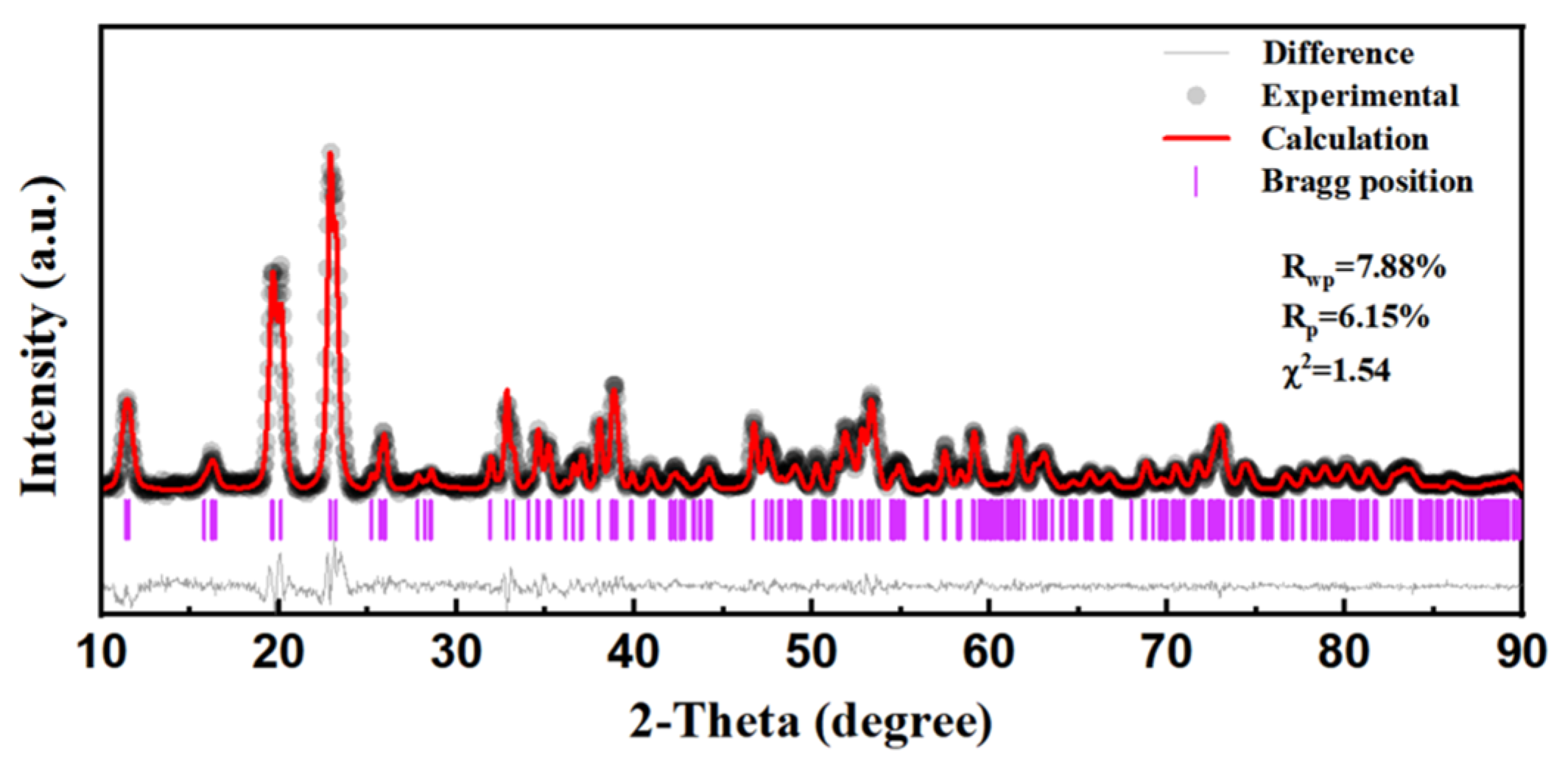 - Toby, B.H.; Von Dreele, R.B. GSAS-II: The genesis of a modern open-source all purpose crystallography software package. J. Appl. Crystallogr. 2013, 46, 544–549. [Google Scholar] [CrossRef]