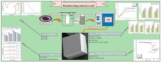 Therefore, cohesive soil in the WuLiu reservoir area was collected and the particle size distribution was analyzed. The effects of different BS and CS concentrations on the crystal morphologies of calcium carbonates were investigated. Mechanical and thermochemical tests were carried out to evaluate the effectiveness of MICP in reinforcing cohesive soil. The results of this study not only improve the current understanding of the basic mechanisms in the formation of calcium carbonate, but also provide a theoretical basis for the reinforcement of cohesive soil in reservoir areas and a reduction in the probability of natural disasters.