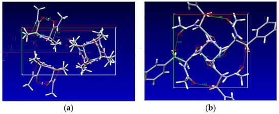 Crystal structure P212121 of NAcAlaNHMA viewed along c axis [34]. Axis a points towards right; axis b points down. (a) Crystal structure P41 of NAcTyrNHMA viewed along c axis [44]. Axis a points towards right; axis b points down. (b) Dotted green lines indicate intermolecular H-bonds. Figures prepared using Mercury program [45].