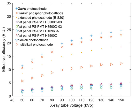 Effective efficiency of GAGG:Ce paired with several photocathodes.