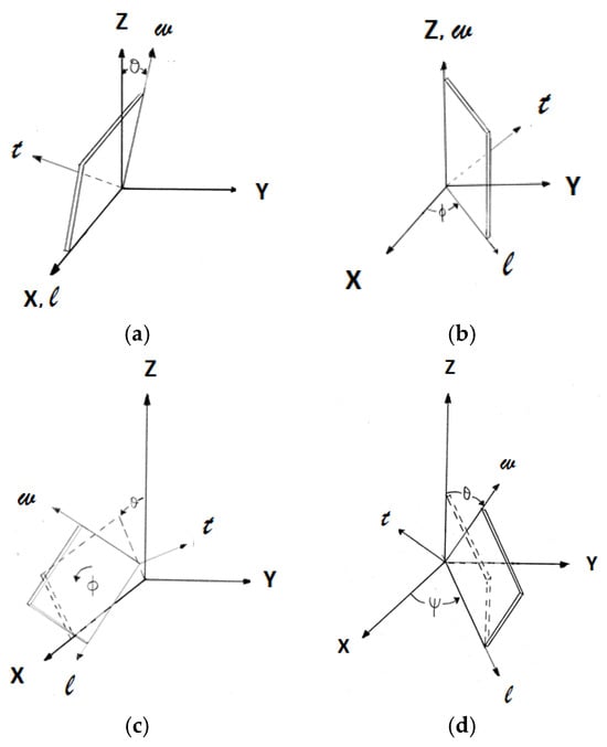 For a Y-cut plate (YXwl) ψ/θ (Figure 1d), the direction cosine matrix (a) is the product of the two individual rotations,  for a rotation of ψ about the Z axis, followed by  for a rotation of  about X′: