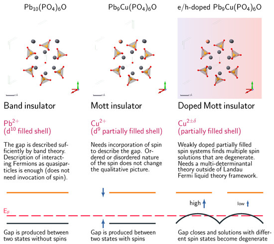 - Si, L.; Wallerberger, M.; Smolyanyuk, A.; di Cataldo, S.; Tomczak, J.M.; Held, K. Pb10−xCux(PO4)6O: A Mott or charge transfer insulator in need of further doping for (super)conductivity. J. Phys. Condens. Matter 2023, 36, 065601. [Google Scholar] [CrossRef] [PubMed]
