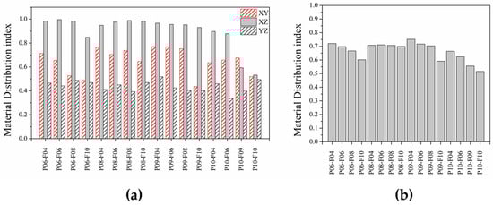 (a) MD indexes divided by sectioning planes. (b) Global material distribution indexes related to the various CST conditions.