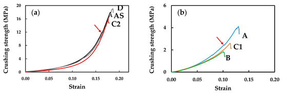 Typical compressive stress–strain curves of the samples are presented in Figure 5.