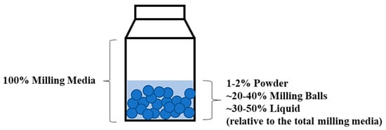 The synthesis of GDC samples was performed using a recently developed single-step co-precipitation technique described in our previous work [15]. In this regard, the weight fraction of C-PF in the anode formula was calculated based on the weight of C-PF relative to the total amount of anode cermet and C-PF (anode cermet + C-PF). Two different anode samples containing 5 wt.% and 10 wt.% of C-PF were prepared for each type of anode material, respectively, referred to as A5% C-PF and A10% C-PF. On the other hand, Green-PFs and anode cermets were mixed based on volume fractions, where the volume fraction of Green-PF was calculated based on the volume of Green-PF relative to the total volume of anode cermet and Green-PF. Three different anode samples containing 20 vol.% (A20%Green-PF), 30 vol.% (A30%Green-PF) and 40 vol.% (A40%Green-PF) of Green-PF were prepared for each type of anode material. The skeletal density of the powders was used for such calculations, measured by gas pycnometry. To mix the anode cermet and the pore former, wet ball milling in ethanol (at 70 rpm using Capco mdl. 12VS Ball Mill Tumbler and 0.3 cm spherical YSZ balls) was used for 10 min, following the guideline presented in Figure 1. The recovered mixture was dried under vacuum at 50 °C for 2 h and hand ground for 10 min. Polyvinyl alcohol (PVA, average Mw ~130,000, 99+% hydrolysed, Sigma-Aldrich) was added to the anode formula as a suitable binder. An amount of 2 wt.% of PVA was added to all formulated anode powders, where the weight fraction of PVA was calculated based on the weight of PVA relative to the total weight of anode cermet, pore former and PVA. In this process, PVA (appropriate for the production of 2 g of anode powder) was first dissolved in 0.5 mL of deionised water under stirring at 50 °C for 1 h in a 15 mL vial. Then, 4 mL of ethanol was slowly added to the stirring solution, where the solution started to become cloudy. After 1 h of stirring, the prepared mixture of anode cermet and pore former (appropriate for the production of 2 g of anode powder) was then slowly added to the solution and left to stir. After 30 min, 4 mL of ethanol was slowly added to the suspension and stirred for 4 h. The suspension was then dried under vacuum at 50 °C overnight. The recovered anode powder was then ground for 10 min using a mortar and pestle.