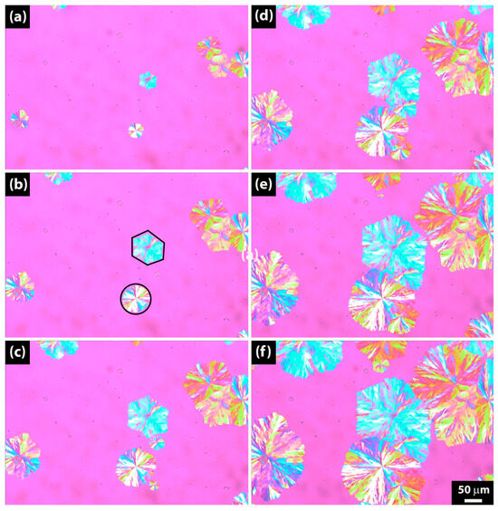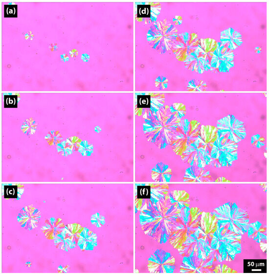 For assessing spherulitic isothermal crystallization kinetics at various constant temperatures, an Olympus BX41 polarized optical microscope (Olympus, Tokyo, Japan) was employed in conjunction with a Linkam TP 94 hot stage (Linkam Scientific Instruments, Salfords, UK).