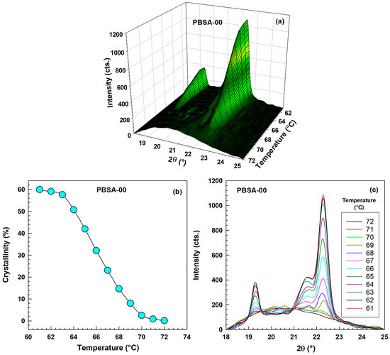 To determine WAXD crystallinity, we employed Anton Paar’s XRDanalysis software (version 1.2.0.3511). The software calculated crystallinity as a percentage: the ratio of the integrated intensities from the crystalline regions to the total integrated intensities, multiplied by 100. We consistently analyzed three samples per measurement and reported their average values. For experiments involving stepwise cooling, an Anton Paar TCU 110 Temperature Control Unit was used.