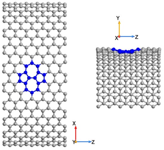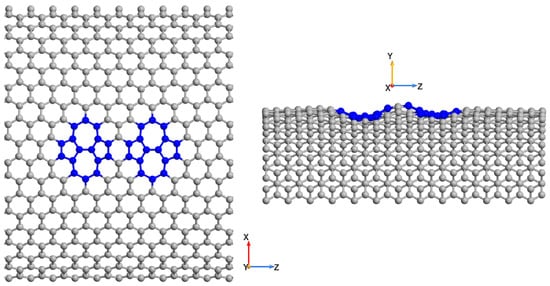 - Openov, L.A.; Podlivaev, A.I. Interaction of the stone–wales defects in graphene. Phys. Solid State 2015, 57, 1477–1481. [Google Scholar] [CrossRef]