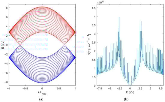 (a) Band structure and (b) DOS of CNT(24,24) calculated in MATLAB R2021b.