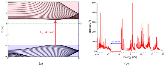 Band structure (a) and DOS (b) of hBN(27,27) calculated using DFT.