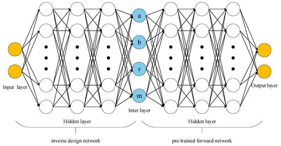 The tandem neural network consists of a pre-trained forward network and an inverse design network, and the structure of the tandem neural network is shown in Figure 4.
