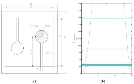 The doors, seats, and roofs of automobiles are prone to low-frequency resonance, resulting in significant vibration and noise. These low-frequency vibrations not only affect driving comfort, but can also lead to premature component failure, increasing safety hazards. The bandgap in AMMs usually refers to the fact that within a certain frequency range of periodic materials, the material strongly suppresses the propagation of vibration waves or sound waves, resulting in the inability of waves within this frequency band to propagate within the material. That is, in the bandgap frequency range, vibrations or sound waves are effectively blocked or attenuated. Traditional damping materials are limited by their mass and load-bearing capacity, and it is difficult to achieve the performance of lightweight, high-strength, and low-frequency broadband bandgap at the same time [1,2]. Traditional structural vibration isolators are generally used for medium and high frequency vibration suppression, which has certain limitations.