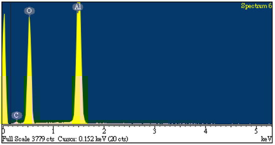 EDS measurement of the sapphire surface after CMP. Al and O are found, and C contamination is also detected.