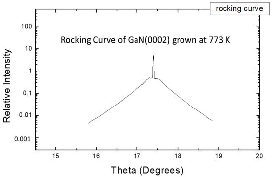 The rocking curve of GaN (0002) diffraction peaks exhibited both a sharp and a broad diffuse component.