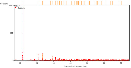 The reference gypsum crystals were analyzed by X-ray diffraction (XRD) using a Panalytical X’Pert Pro PW 3040/60 powder diffractometer (Malvern Panalytical Ltd., Malvern, UK).