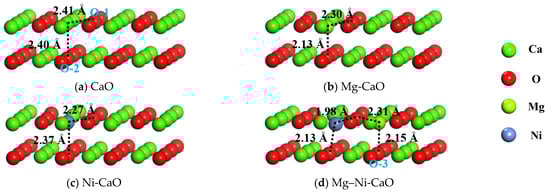 | Mg–Ni-CaO | Ni-O1 | 1.98 | Ni-O2 | 2.13 |