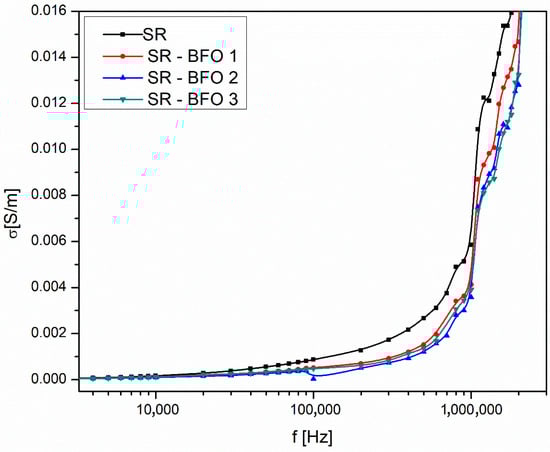 The frequency dependence of conductivity for silicone rubber (SR) and SR-BFO samples.