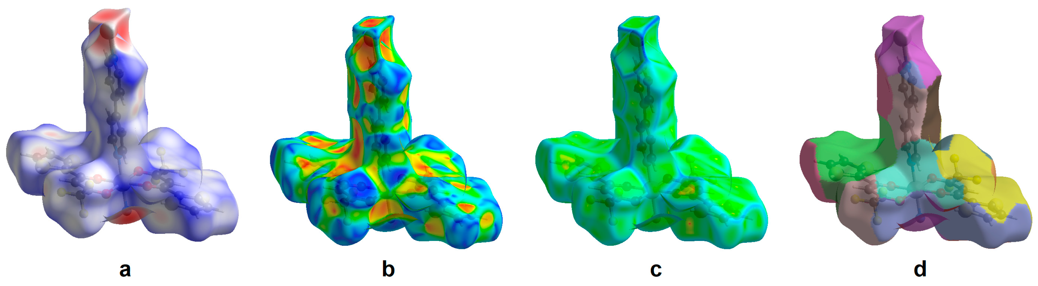 - Gholivand, K.; Farshadfar, K.; Roe, S.M.; Hosseini, M.; Gholami, A. Investigation of Structure-Directing Interactions within Copper (i) Thiocyanate Complexes through X-Ray Analyses and Non-Covalent Interaction (NCI) Theoretical Approach. CrystEngComm 2016, 18, 7104–7115. [Google Scholar] [CrossRef]
