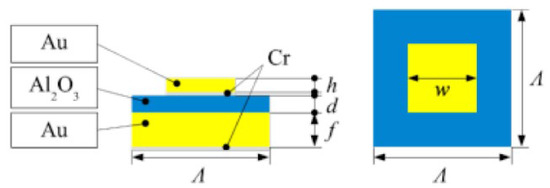 - Ogawa, S.; Kimata, M. Metal-insulator-metal-based plasmonic metamaterial absorbers at visible and infrared wavelengths: A review. Materials 2018, 11, 458. [Google Scholar] [CrossRef]