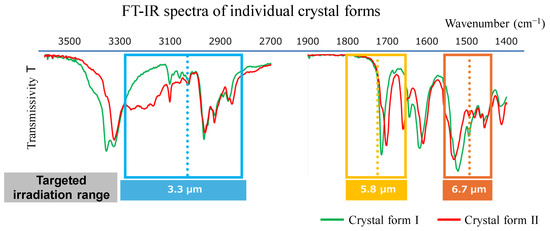In particular, since MIM emitters are capable of narrow-band and wavelength-selective infrared irradiation, wavelengths that coincide with the vibrational absorption bands of functional groups can be selected to achieve selective excitation at the molecular level. In an experiment with the protease inhibitor Ritonavir, we were able to induce the selective formation of a pseudo-stable phase (crystal form I) or the most stable phase (crystal form II) by selecting the irradiation wavelength, suggesting that selective infrared wavelength absorption by intermolecular hydrogen bond networks may play an essential role in the control of crystal polymorphs.