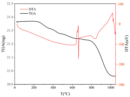 Differential thermal analysis (DTA) was carried out using a DTG-60 thermal analyzer (Shimadzu, Kyoto, Japan). Before testing, the samples were ground to 200 mesh. The analysis was conducted in air over a temperature range from 22 °C to 1000 °C at a heating rate of 10 °C/min.