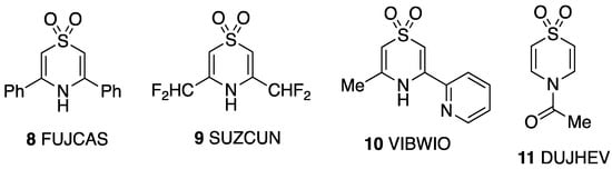 Other crystallographically characterised 2,3-dihydro-1,4-thizine S,S-dioxides with CSD Refcodes.