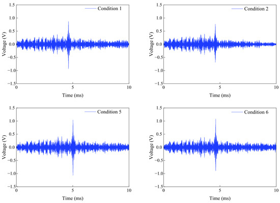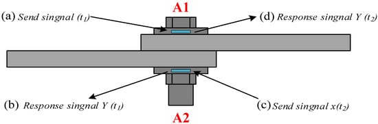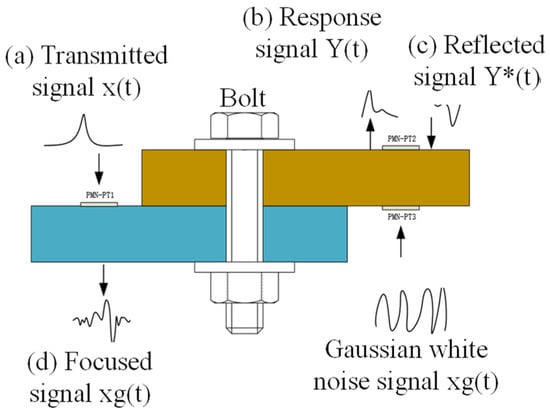 As shown in Figure 1, based on the positive and negative piezoelectric effects of piezoelectric materials [63], the Gaussian sinusoidal wave excited by Sensor A as a driver is denoted as , and the signal received by Sensor B is denoted as .