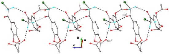 As indicated by the data from Table 3, in the crystal structure of polymorph I, there are two short intermolecular contacts C-H···O, involving carbonyl O1 or acetoxy O5 atoms as acceptors, which are responsible for assembling the molecules into one-dimensional supramolecular arrays (Figure 5).