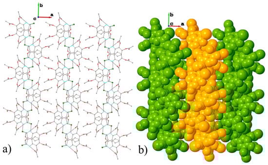 This specific structural module influences crystal packing, which determines the assembly of a quite dense and complex three-dimensional supramolecular network, as illustrated in Figure 9.