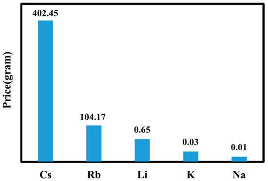 Price chart of A-site alkali metal elements in Ge-based perovskite materials.